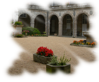 La statue de la Vièrge, au centre de la cour, est une réduction de Notre-