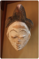 Les Punus vivent au Sud du Gabon et de la République du Congo. La plupart des masques Punus sont des masques blancs, le blanc symbolisant l'ancêtre. Les traits des masques Okuyi, les masques les plus répandus, sont réalistes. Les coiffures sont complexes, les bouches protubérantes, les yeux globuleux à demi clos. Ce type de masque était dansé sur échasse et accompagnait les funérailles et les fêtes de réjouissance.
